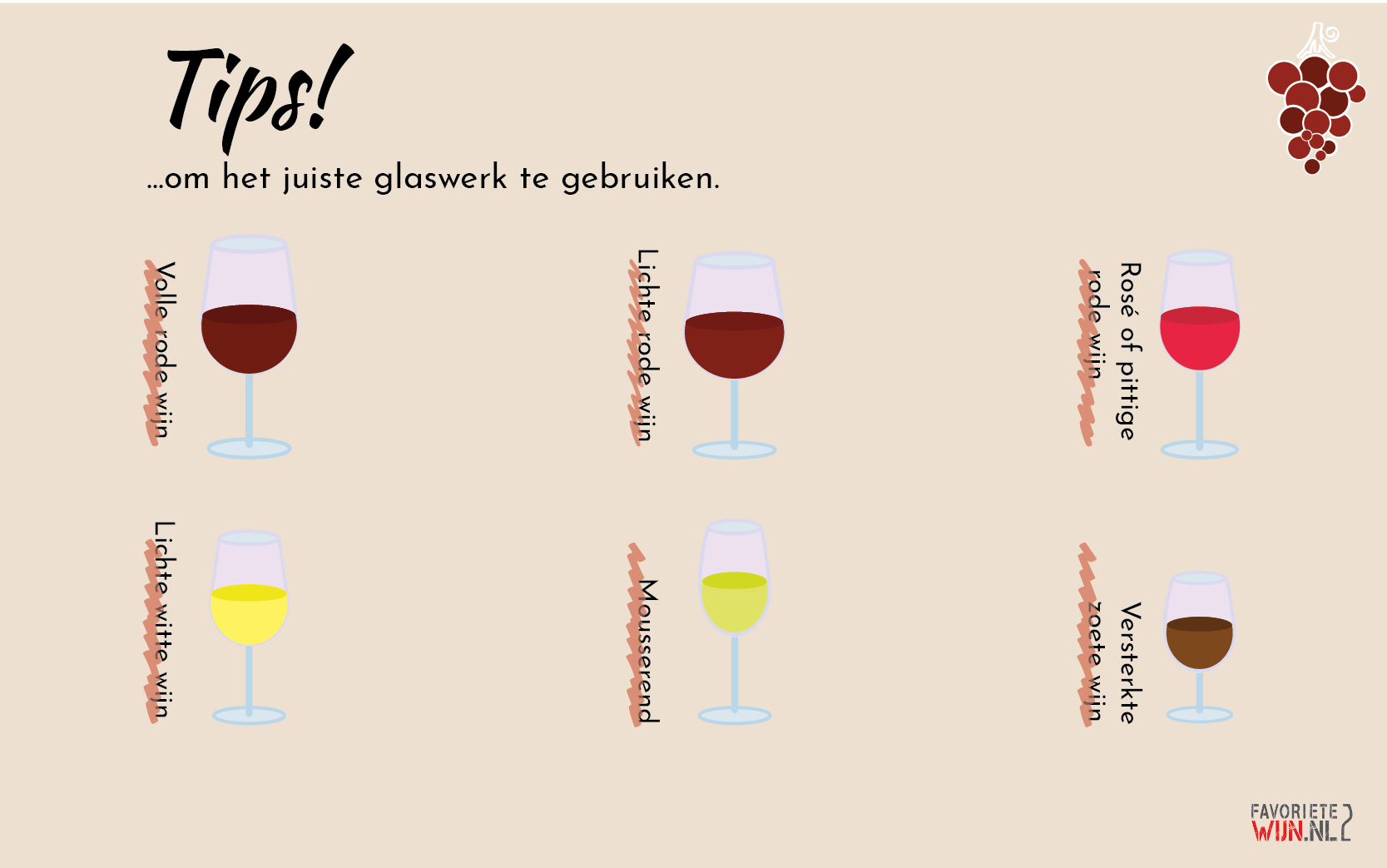 Uiteraard om het drinkgenot te bevorderen! Elke wijnsoort heeft een eigen expressie. Om deze optimaal naar voren te laten komen zijn er verschillende glazen. Bij rode wijn is het de bedoeling dat het oppervlak zo groot mogelijk is om de wijn in contact te laten komen met zuurstof. Het maakt het ook makkelijker om het glas rond te draaien (walsen) waardoor de geur beter naar voren komt. Hierdoor zijn veel rode wijnglazen dan ook een stuk breder dan witte wijnglazen.