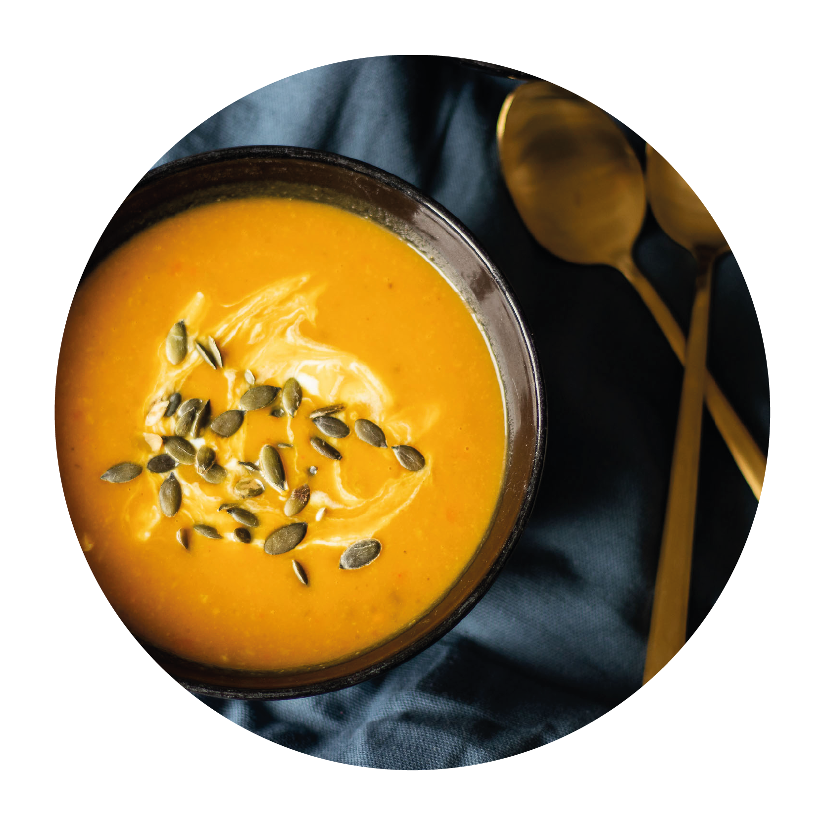 Wat is oktober zonder pompoen(soep)? Pompoen geeft namelijk een heerlijk verwarmend gevoel op een gure dag. Het valt in de categorie 'zoete groenten' en past daarom bij een wijn die een iets drogere en frisse stijl heeft zoals Chardonnay of Riesling. Let op dat de wijn niet te zurig is want dan verdwijnt het zoete karakter van de pompoen! Ook een rode wijn zoals van de Merlot-druif kan het zoete karakter goed versterken.