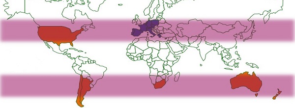 In Nederland merken we dit ook en kunnen we de laatste jaren steeds makkelijker bepaalde druivensoorten verbouwen. Dit houdt in dat de grens waarop wijn verbouwd kan worden iets opschuift naar het noorden op het noordelijk halfrond. Voor het zuidelijk halfrond geldt dat deze juist iets opschuift naar het zuiden. Volg je het nog? Bekijk hieronder de afbeelding van hoe dit in zijn werk gaat.